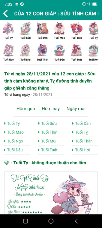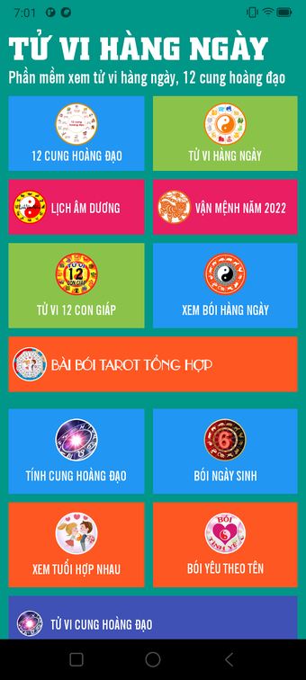 Tử Vi Hàng Ngày는 Apps Mini Store에서 개발한 Android 앱으로, 점성술과 타로 카드 해석에 관심 있는 사용자를 위해 제공됩니다. 이 앱은 중국 십이지를 기준으로 하는 12개의 별자리에 해당하는 12개의 별자리에 대한 매일의 운세를 제공합니다. 사용자는 자신의 별자리에 기반하여 운명, 성격 특성 및 타인과의 호환성을 확인할 수 있습니다. 또한, 사용자는 2023년을 위한 음력 달력을 확인할 수도 있습니다. 음력 달력에는 음력 날짜, 휴일 및 이벤트가 포함되어 있습니다.